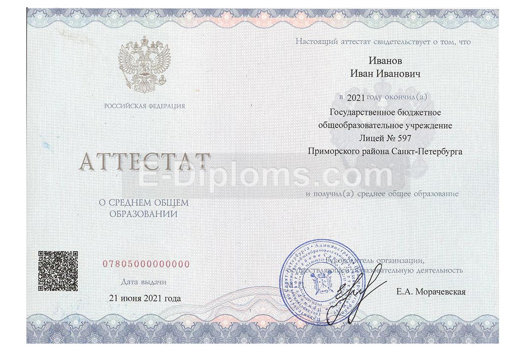 Диплом о среднем образовании с 2021 по 2026 год с QR